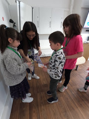 ; Playing group family 👨👩👧👦 games with Miss Ceci; Playing interactive theatre games 🤹🏻♀️ with Bonnie