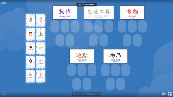 – Categorising keywords learnt in stories into foods, animals, actions, etc.