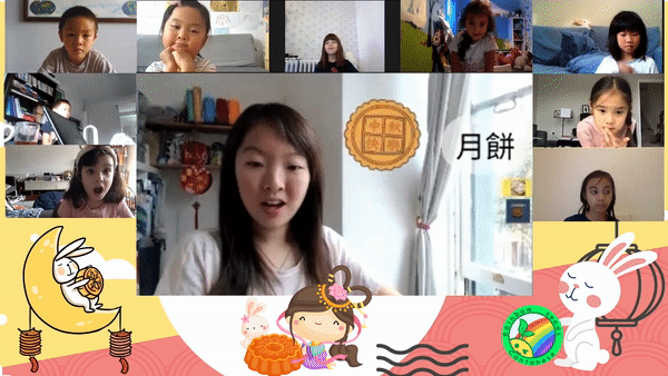 E.g. teacher acts like cutting and eating the mooncake, and all students are able to follow and enjoy